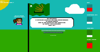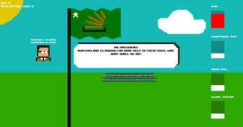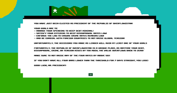Inspired by the strategy game Reigns by Nerial, "Welcome to Overflowistan" sees you take control as president of the Republic of Overflowistan where you have to keep balance of your debt, approval ratings, crime rates and foreign relations; but with a twist: You can't decrease any of these rates, you have to balance them out by raising them till they overflow!